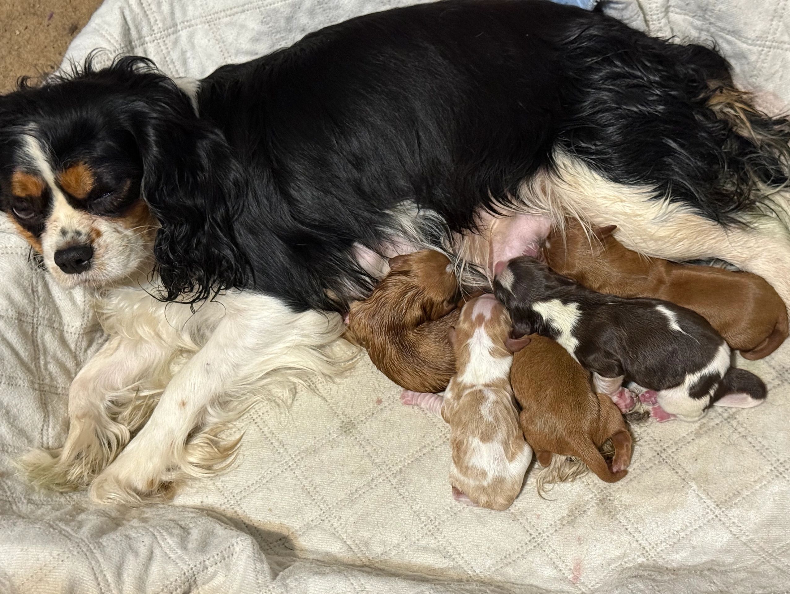 Prior to going home, they will have vet checks at six weeks and at eight weeks. They will be fecal tested, thoroughly examined, vaccinated, micrcpped, and receive health certificates.